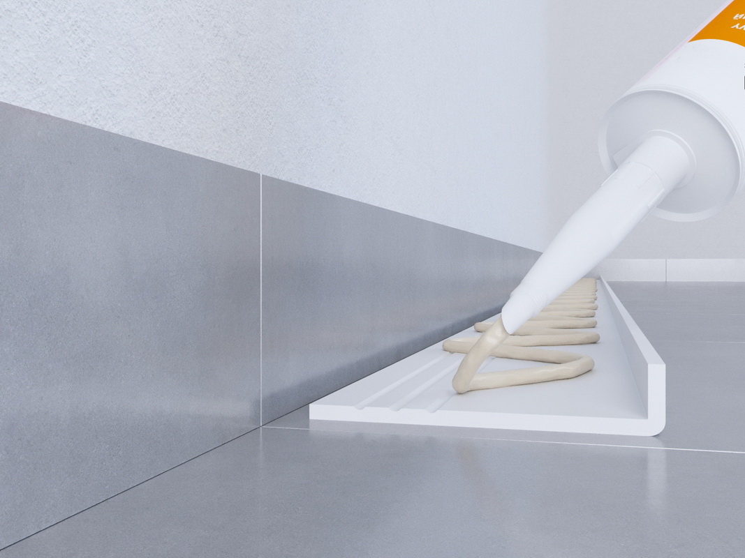 - Montage mit Kleber: geeigneten Monatgekleber auf der KLebefläche der Leiste aufbringen an der Wand verkleben