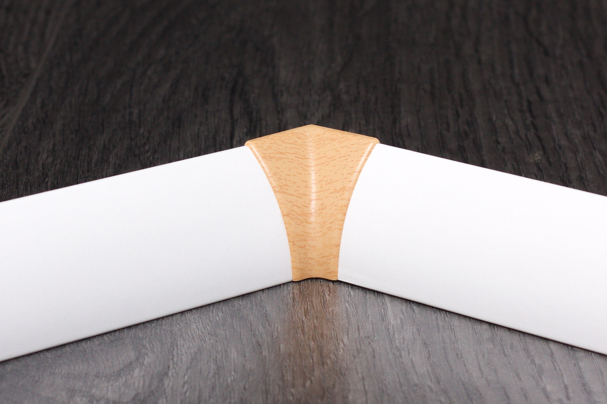 Mit den Zubehörteilen für die Sockelleiste Softline 40 mm lässt sich ein formschöner und harmonischer Übergang und Abschluss zwischen den Fußleisten herstellen. Ein Gehrungsschnitt an Innen- oder Außenecken nicht mehr erforderlich. Die Zubehörteile werden einfach auf die Leiste gesteckt. Das Verlegen von Kabeln hinter der Leiste ist möglich. Die Innen- und Außenecken haben einen Winkel von 90 Grad.
