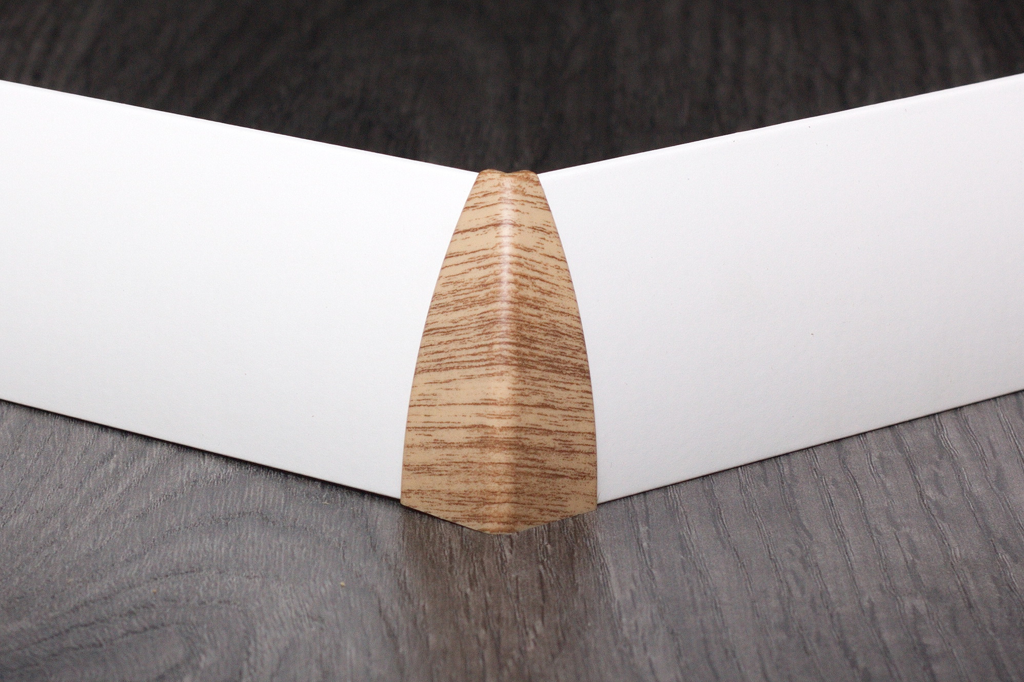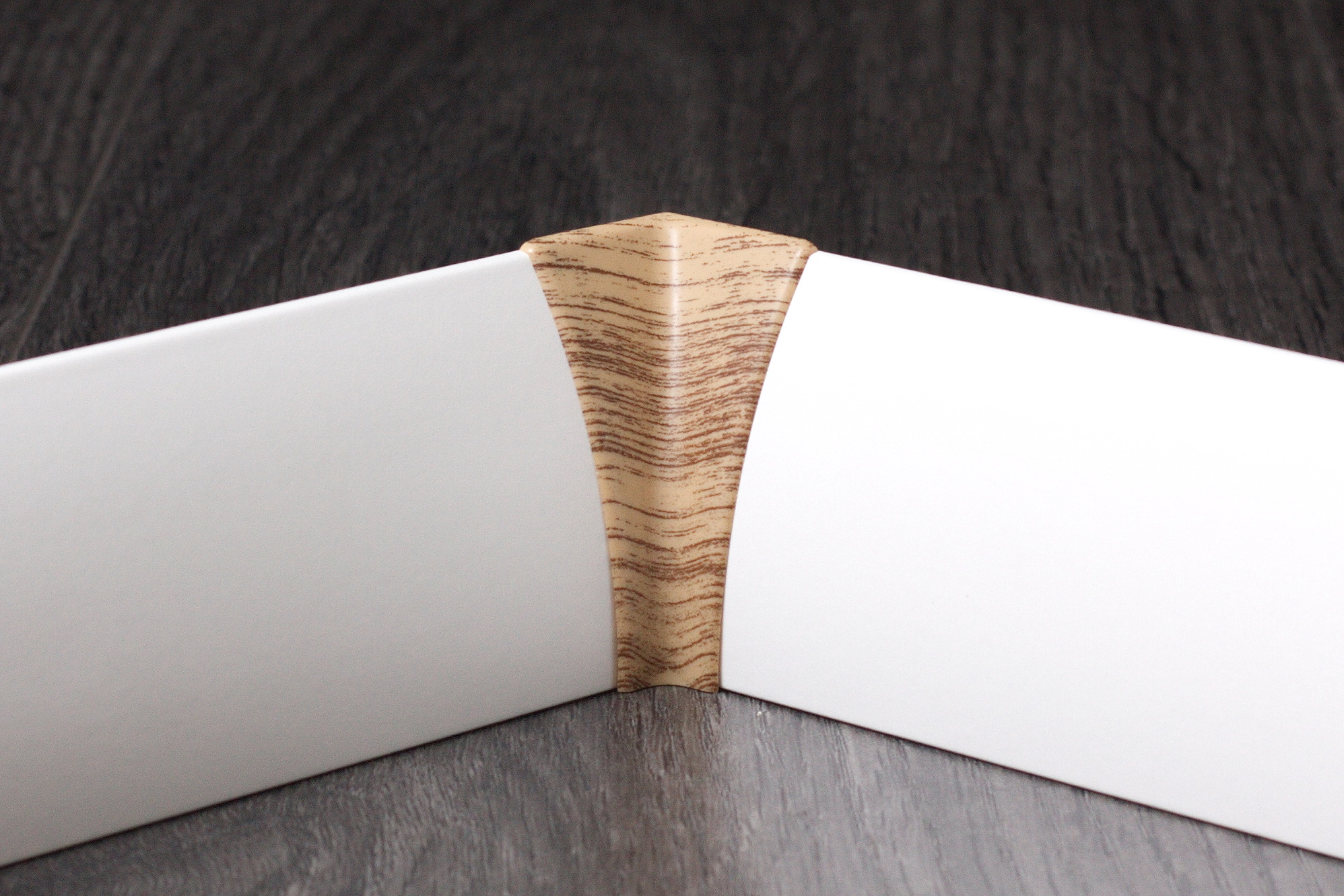 Mit den Zubehörteilen für die Sockelleiste Softline 60 mm lässt sich ein formschöner und harmonischer Übergang und Abschluss zwischen den Fußleisten herstellen. Ein Gehrungsschnitt an Innen- oder Außenecken nicht mehr erforderlich. Die Zubehörteile werden einfach auf die Leiste gesteckt. Das Verlegen von Kabeln hinter der Leiste ist möglich. Die Innen- und Außenecken haben einen Winkel von 90 Grad.