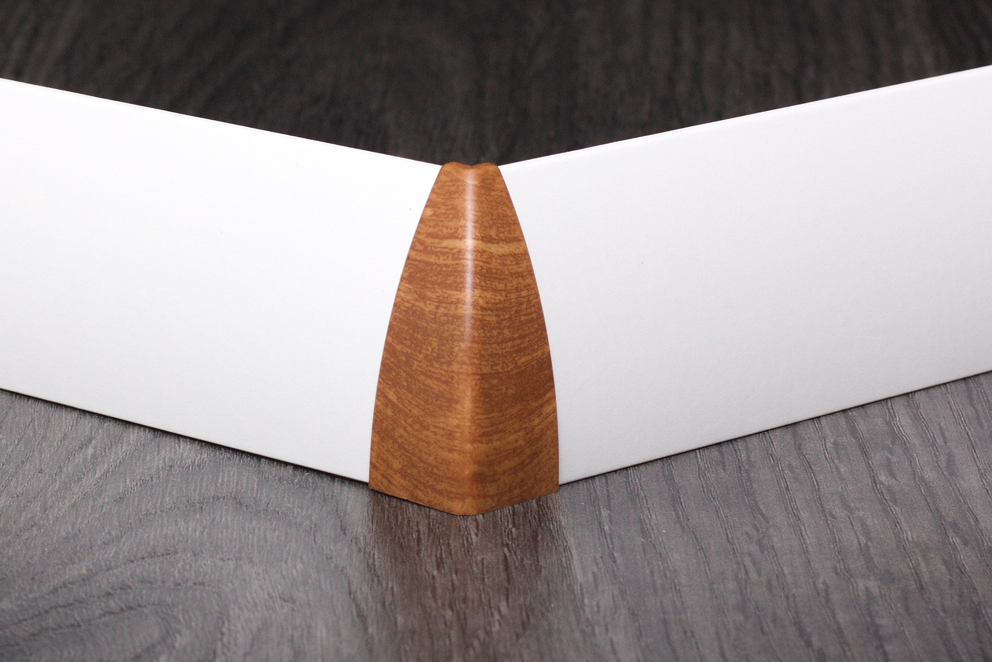 Mit den Zubehörteilen für die Sockelleiste Softline 60 mm lässt sich ein formschöner und harmonischer Übergang und Abschluss zwischen den Fußleisten herstellen. Ein Gehrungsschnitt an Innen- oder Außenecken nicht mehr erforderlich. Die Zubehörteile werden einfach auf die Leiste gesteckt. Das Verlegen von Kabeln hinter der Leiste ist möglich. Die Innen- und Außenecken haben einen Winkel von 90 Grad.