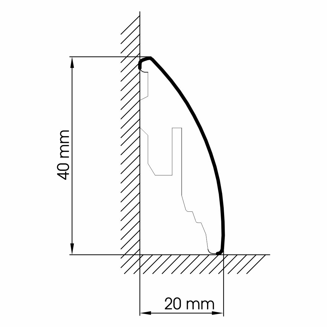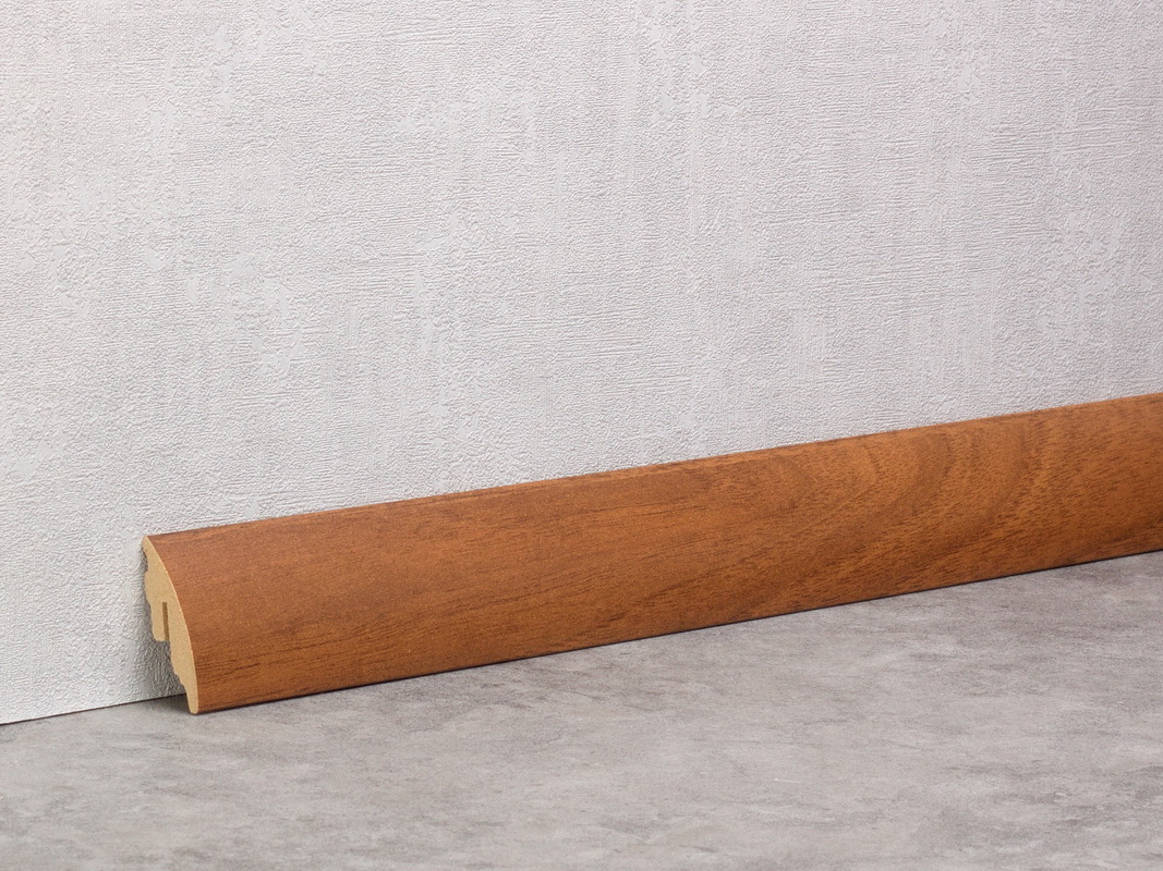 Nussbaum dunkel - Sockelleiste 40mm SoftlineDie Sockelleiste 40mm Softline ist eine strapazierfähige, funktionale Bodenleiste aus dekorummanteltem MDF- Material. Mit der Fußleiste können notwendige Dehnungsfugen bis 20mm Breite zuverlässig abgedeckt werden. Mit den separat erhältlichen Systemclips lässt sich eine verdeckte Montage realisieren. Das Montagesystem ist so konzipiert, dass die Leiste von oben auf die Montageclips gesteckt wird und auf der Rückseite gleichzeitig ein Kanal für die Verlegung von Kabel entsteht. Bei nachträglichen Renovierung oder Malerarbeiten kann die Randleiste problemlos entfernt und erneut wieder montiert werden. Passende Formteile wie Innenecken, Außenecken, Leistenverbinder und Abschlusskappen runden das Programm ab.