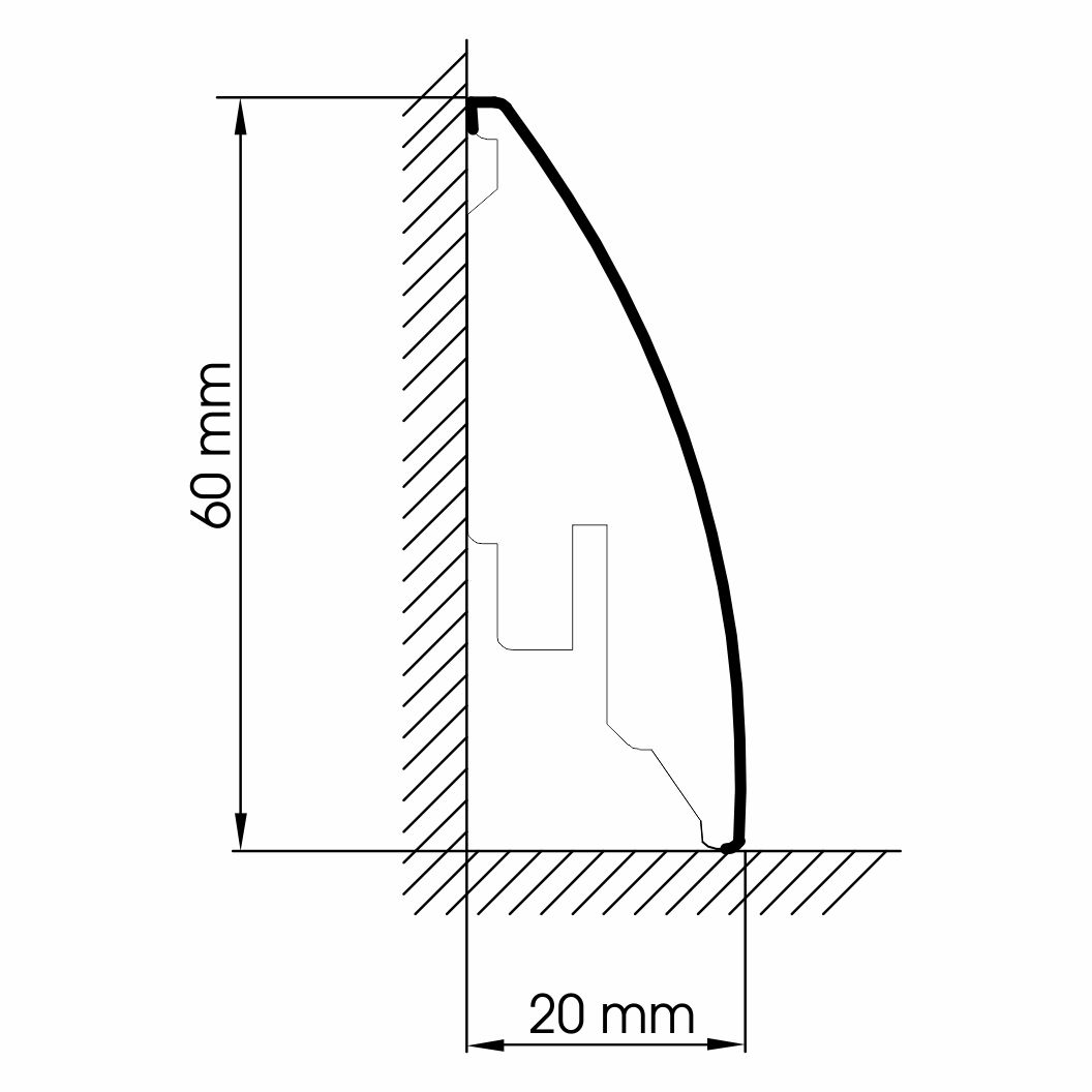 60mm Softline ist eine strapazierfähige, funktionale Bodenleiste aus dekorummanteltem MDF- Material. Mit der Fußleiste können notwendige Dehnungsfugen bis